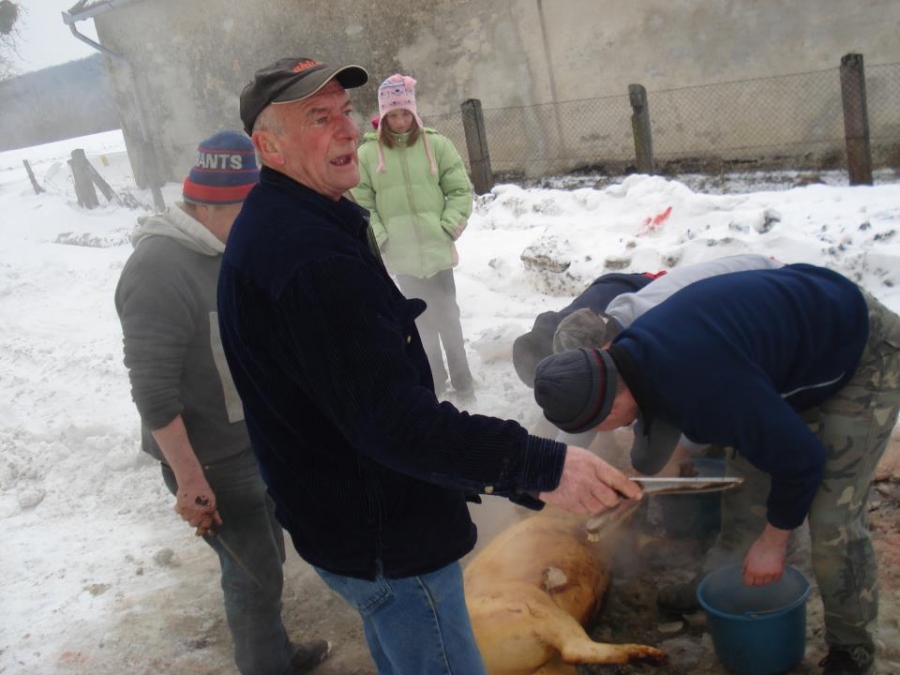 Ozmánbük - A tavalyi sikerre való tekintettel két, a faluért tenni akaró fiatalember, Csatlós István József és Horváth László a hét végén ismét megszervezte Ozmánbükben a disznóvágást. A böllér feladatait ugyancsak Csatlós István József látta el, aki szakmáját tekintve is hentes. Segítői között volt a falu apraja-nagyja - számolt be a falu polgármestere, Kovács Anikó.A kötelező fogópálinka után nagy lelkesedéssel végezték a közösen vásárolt coca feldolgozását. A nap végén átfázva, de nagy örömmel ültek a terített asztalhoz, melyen disznótoros káposzta, hurka, kolbász, pecsenye illatozott. A férfiak a finom ételeket főző asszonyoknak megígérték, nőnapra ők készítenek vacsorát a hölgyeknek a megmaradt húsból. Magyar Hajnalka(Zalai hírlap)